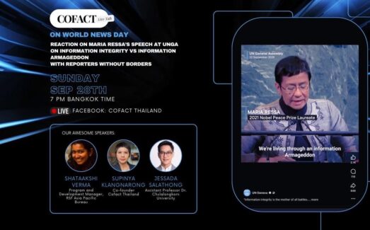 1 ตุลาคม 2025 กิจกรรม สิ้นสุดยุคแห่งข้อเท็จจริง? การพูดคุยของ Cofact Live Talk เกี่ยวกับ”Information Armageddon”