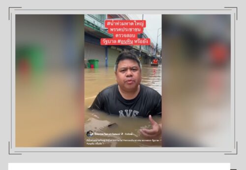 Articles 5/12/25 ❓ Content reviewed: A clip showing a member of parliament’s assistant standing in floodwaters in Hat Yai, calling on the People’s Party to scrutinize the Anutin government.