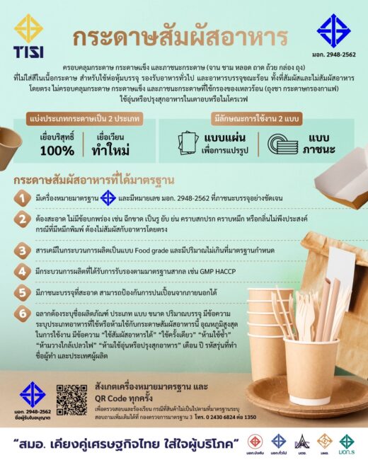 ที่มา : https://pr.tisi.go.th/มอก-2948-2562-กระดาษสัมผัสอาหาร/
