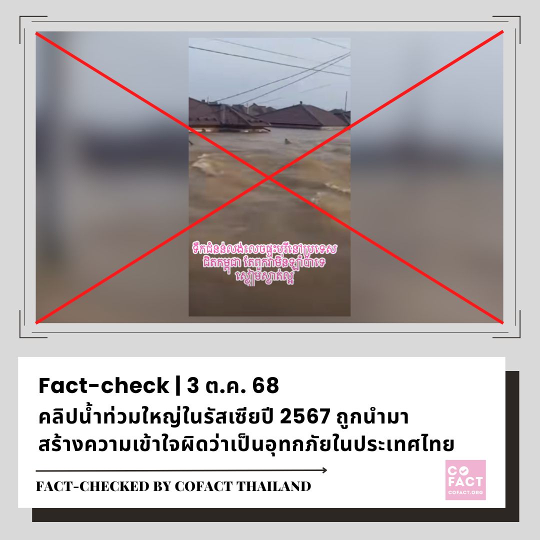 คลิปน้ำท่วมใหญ่ในรัสเซียปี 2567 ถูกนำมาสร้างความเข้าใจผิดว่าเป็นอุทกภัยในประเทศไทย