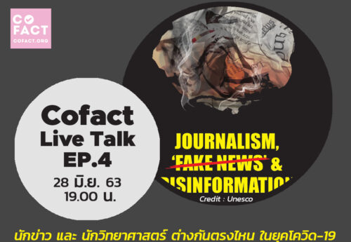 บทความ 1/07/20 Cofact Live Talk กับ หน้าที่สื่อไทยยุคโควิด ควรนำเสนอความจริง สร้างความรู้เท่าทันให้กับประชาชน เนื้อหาที่ทำให้เข้าใจผิด