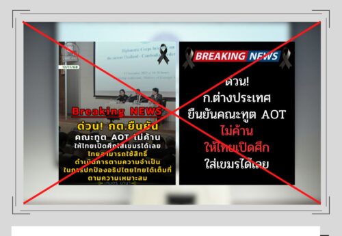 Top Fact Checks ไทย - กัมพูชา 17/11/25 “กต. ยืนยันคณะทูต AOT ไม่ค้านไทยเปิดศึกใส่เขมร” เป็นเนื้อหาเท็จ-หยุดแชร์ เนื้อหาเป็นเท็จ