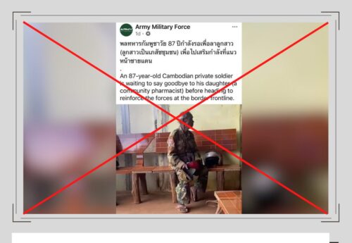 คลิปชายชราชาวกัมพูชาใส่ชุดทหาร ถูกนำมาบิดเบือนว่าเป็นพลทหารวัย 87 ปีที่ถูกส่งไปรบกับไทย