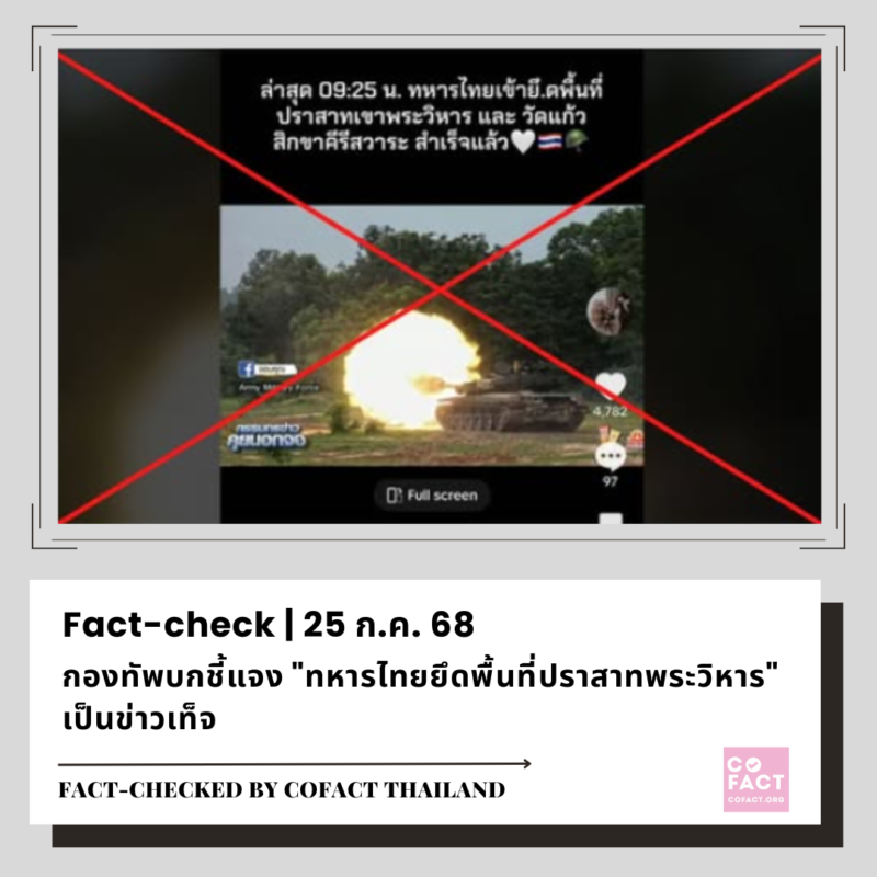26/07/25 บทความ-รายงานพิเศษ (การเมือง) โคแฟครวมการตรวจสอบข้อมูล เหตุการณ์ปะทะระหว่างไทยกับกัมพูชา วันที่ 24 – 25 ก.ค. 2568