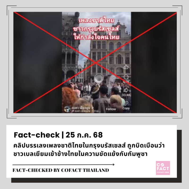 25/07/25 คลิปบรรเลงเพลงชาติไทยในกรุงบรัสเซลส์ ถูกบิดเบือนว่าชาวเบลเยียมเข้าข้างไทยในความขัดแย้งกับกัมพูชา