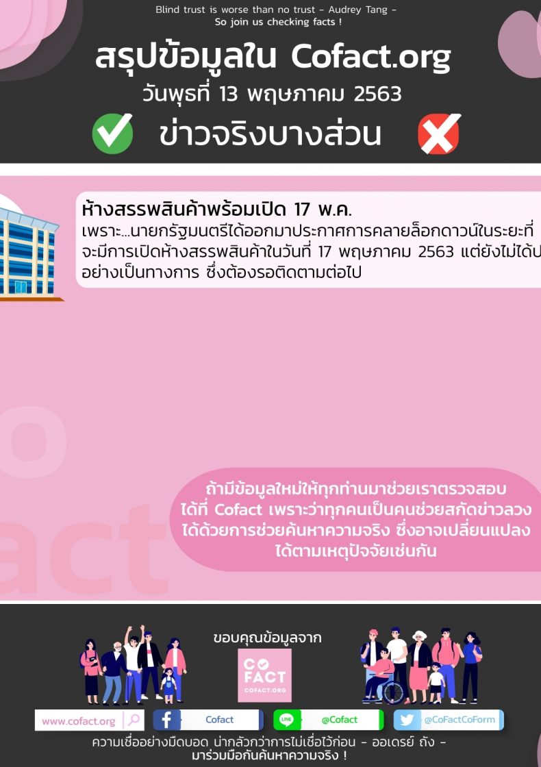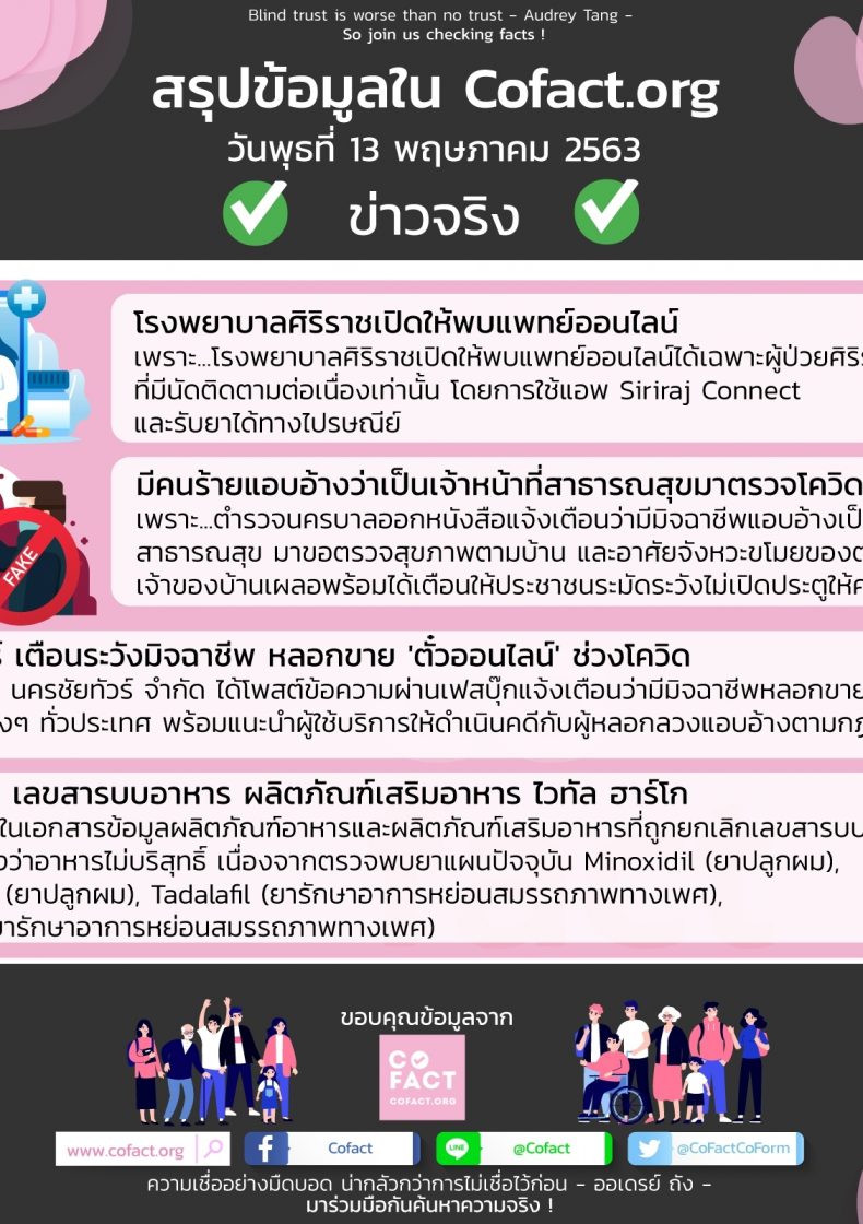 สรุปข้อมูลใน Cofact.org 13 พ.ค. 63
