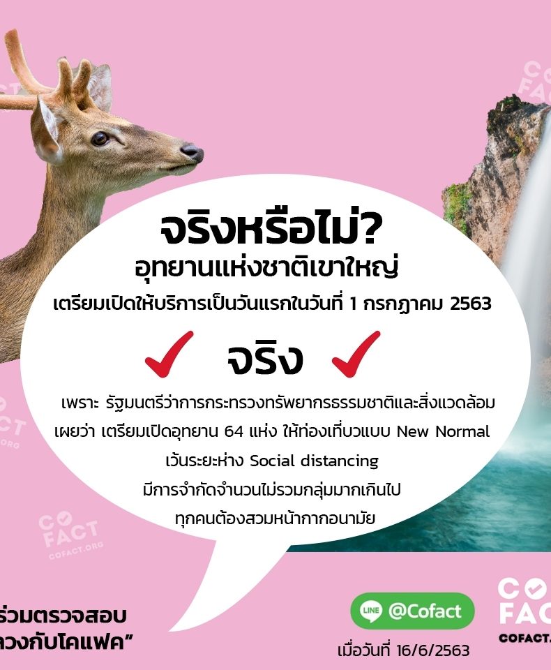 จริงหรือไม่? อุทยานแห่งชาติเขาใหญ่ เตรียมเปิดให้บริการเป็นวันแรกในวันที่ 1 กรกฎาคม 2563