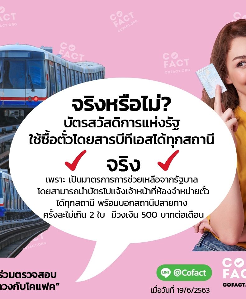 จริงหรือไม่? บัตรสวัสดิการแห่งรัฐ ใช้ซื้อตั๋วโดยสารบีทีเอสได้ทุกสถานี