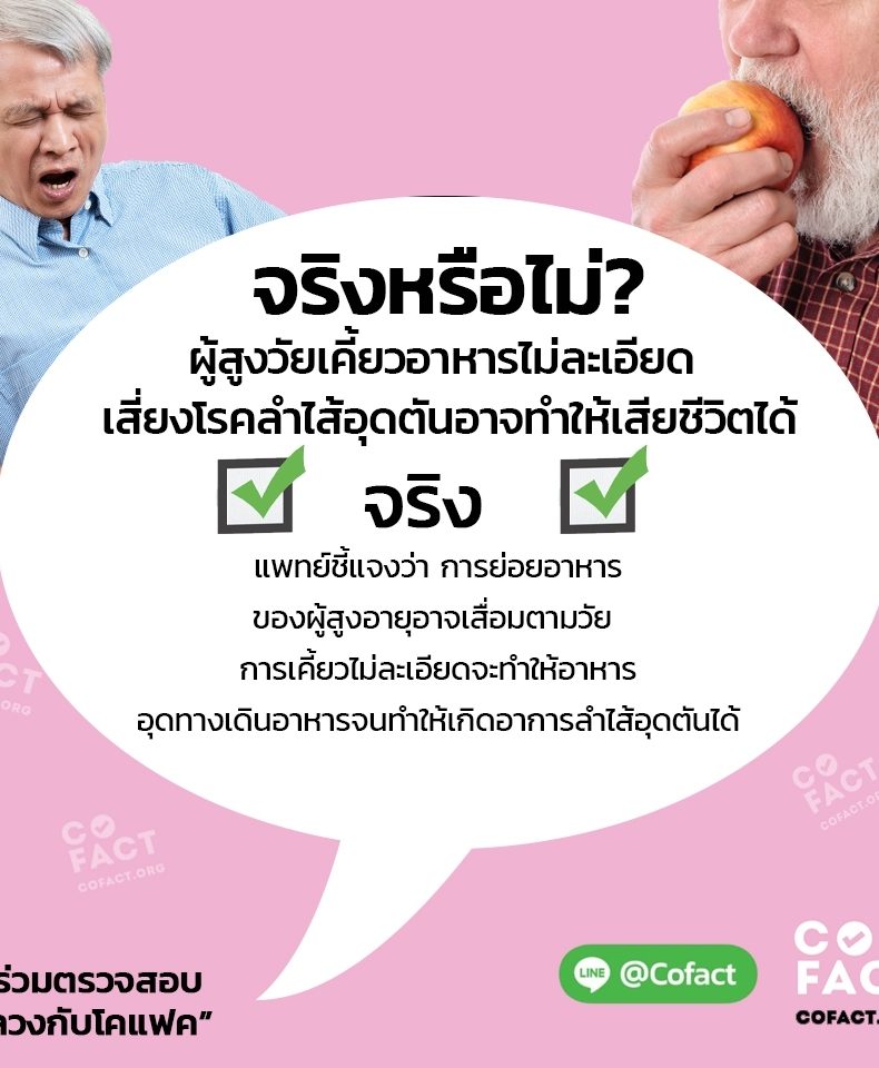จริงหรือไม่? ผู้สูงวัยเคี้ยวอาหารไม่ละเอียด เสี่ยงโรคลำไส้อุดตัน อาจทำให้เสียชีวิตได้