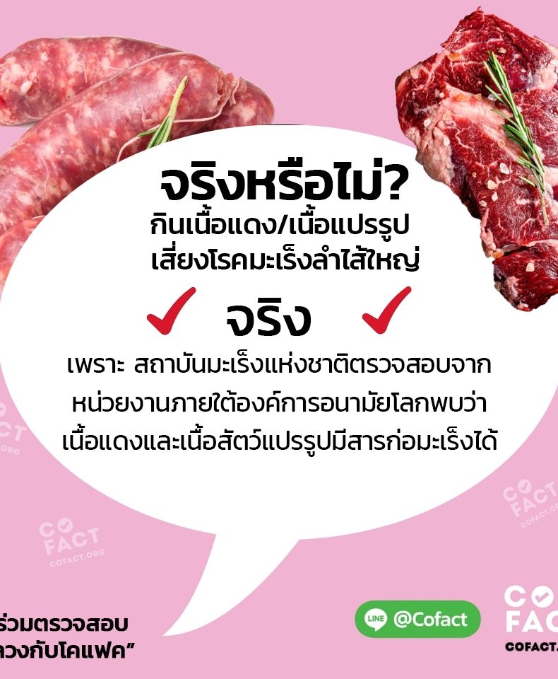 จริงหรือไม่? กินเนื้อแดง/เนื้อแปรรูป เสี่ยงโรคมะเร็งลำไส้ใหญ่
