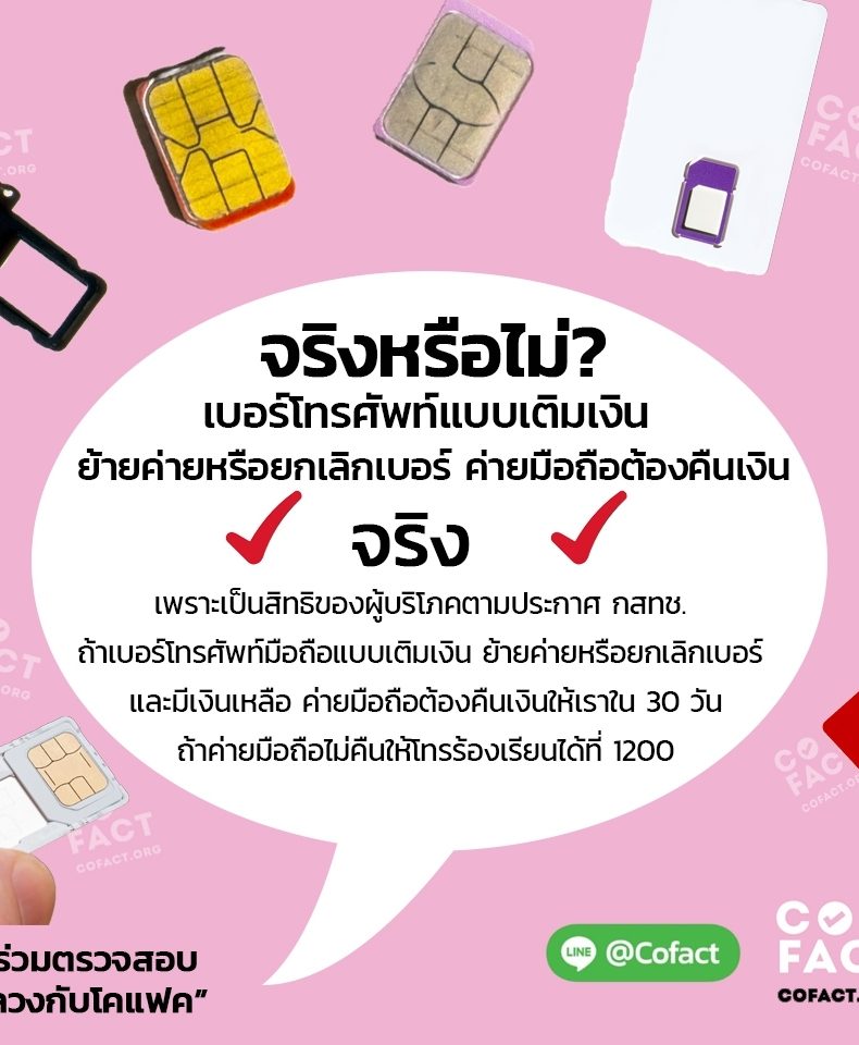 จริงหรือไม่? เบอร์โทรศัพท์แบบเติมเงิน ย้ายค่ายหรือยกเลิกเบอร์ ค่ายมือถือต้องคืนเงิน