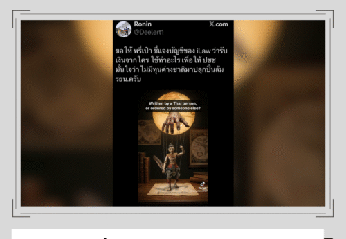 บัญชีผู้ใช้ X หลายรายเผยแพร่ข้อความโจมตี “ไอลอว์” ว่ารับเงินต่างชาติเพื่อล้มรัฐธรรมนูญ