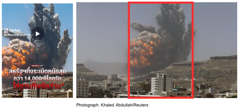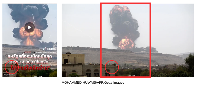 คลิป “สหรัฐฯ ทิ้งระเบิดใส่ฐานทัพอิหร่าน” สร้างด้วย AI โดยใช้ภาพเหตุโจมตีในเยเมนปี 58