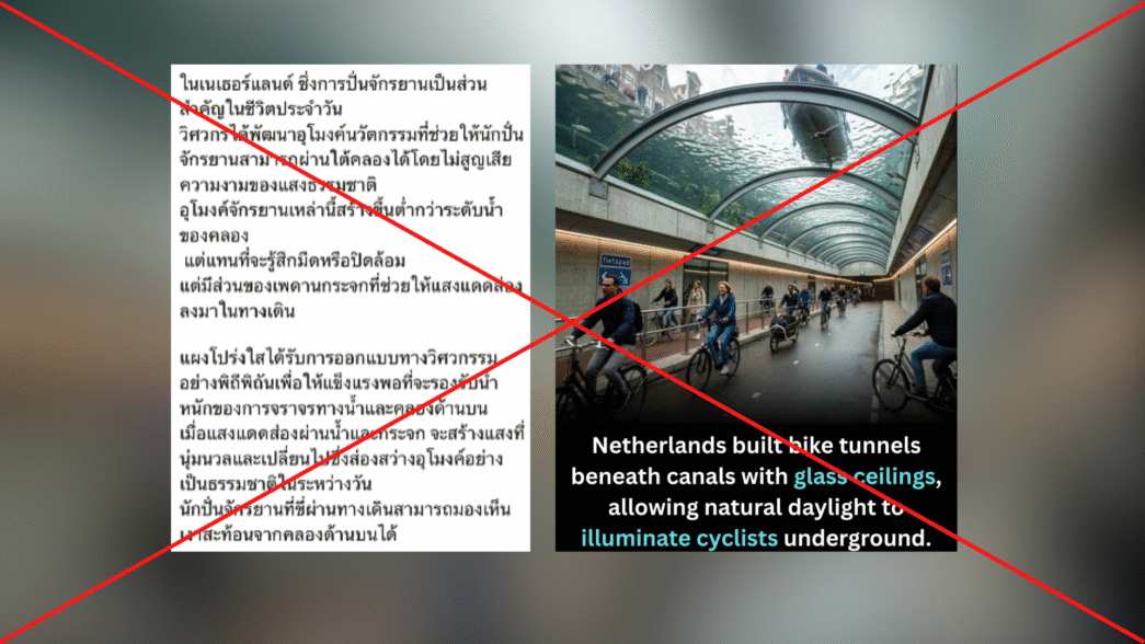 “อุโมงค์จักรยานใต้น้ำ” เป็นภาพ AI สถานทูตเนเธอร์แลนด์ระบุไม่มีอุโมงค์นี้และยังไม่มีแผนสร้าง