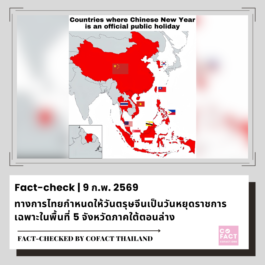🔎 โคแฟคตรวจสอบ: ทางการไทยกำหนดให้วันตรุษจีนเป็นวันหยุดราชการเฉพาะใน 5 จังหวัดภาคใต้ตอนล่าง ดังนี้
