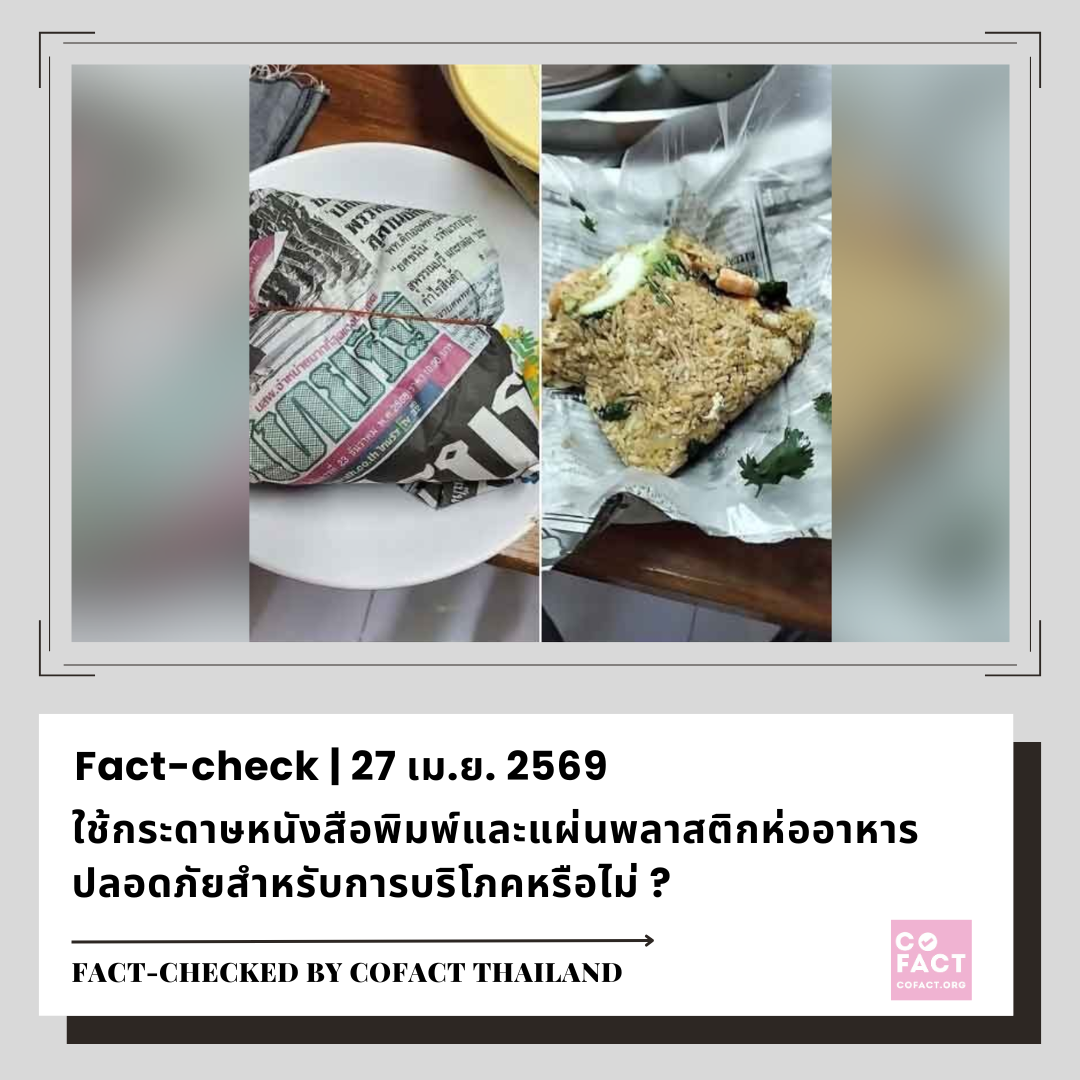 📝 เนื้อหาโดยสรุป: วันที่ 25 เม.ย. 2569 สื่อมวลชนและผู้ใช้สื่อสังคมออนไลน์แชร์ภาพข้าวผัดห่อด้วยกระดาษหนังสือพิมพ์ โดยมีพลาสติกรอง ซึ่งก่อให้เกิดข้อถกเถียงว่าการห่ออาหารแบบนี้ปลอดภัยต่อผู้บริโภคหรือไม่