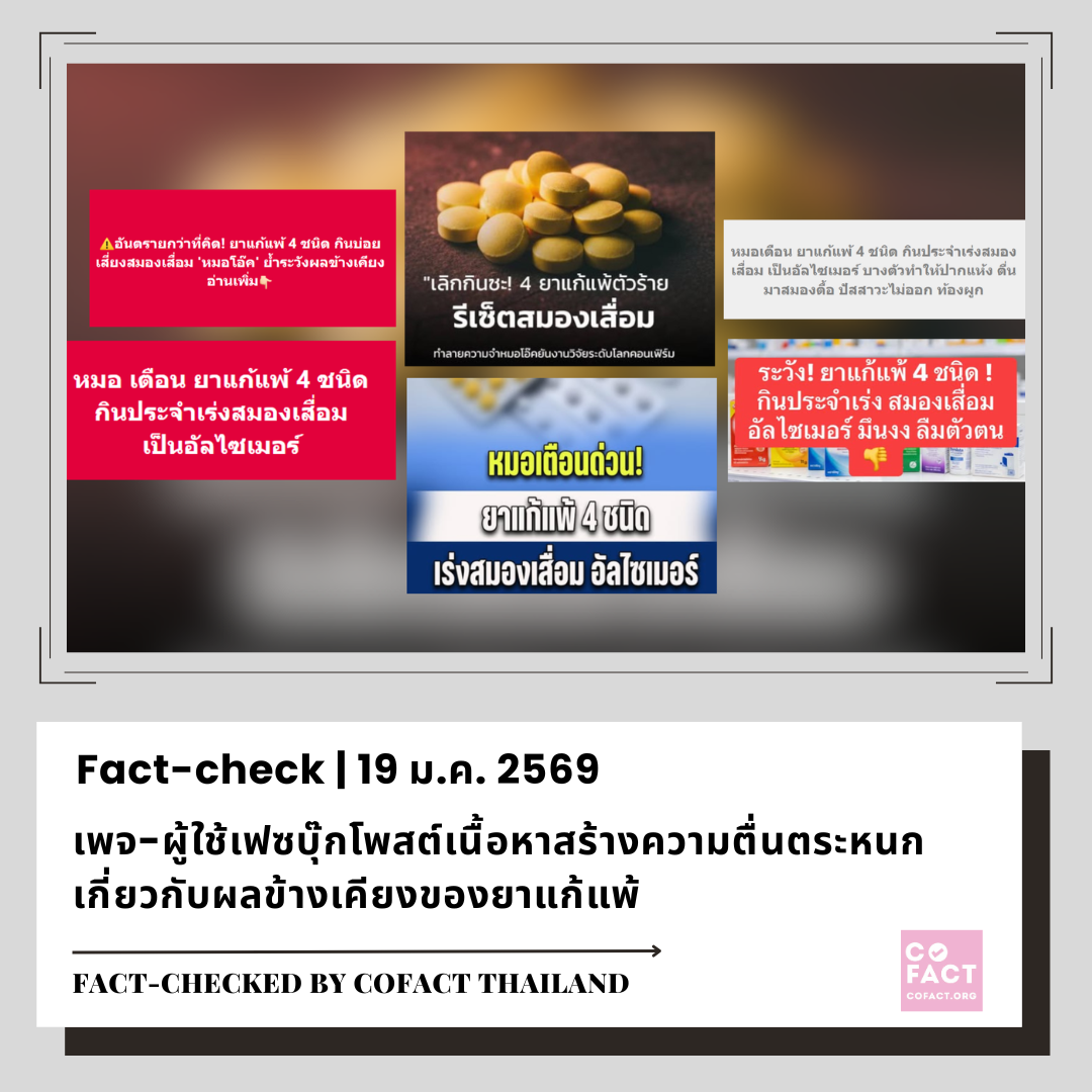 เพจ-ผู้ใช้เฟซบุ๊กโพสต์เนื้อหาสร้างความตื่นตระหนกเกี่ยวกับผลข้างเคียงของยาแก้แพ้