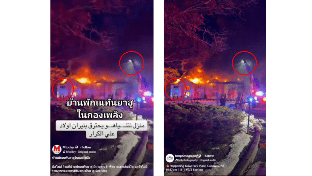 ภาพเหตุเพลิงไหม้บ้านในรัฐนิวเจอร์ซี สหรัฐฯ ถูกนำมาอ้างเท็จว่าเป็นการโจมตีบ้านพักนายกฯ อิสราเอล