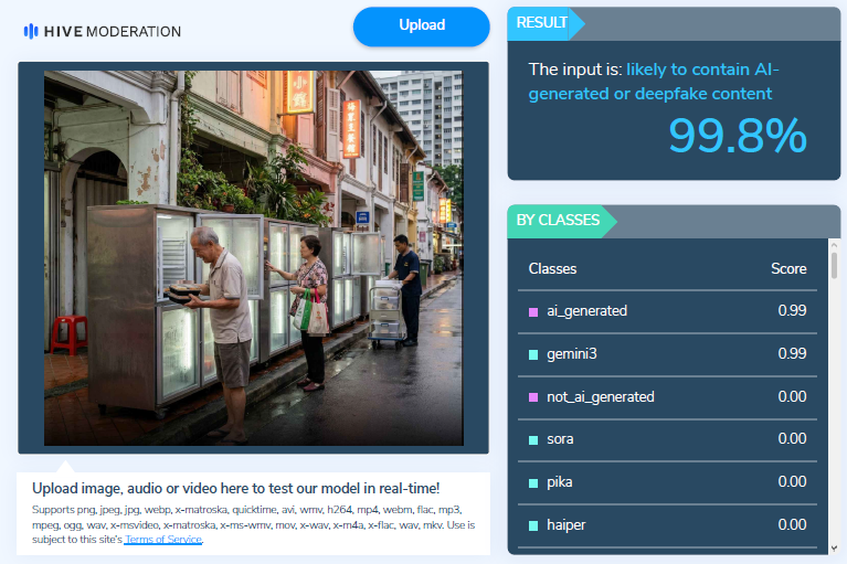 อย่างไรก็ตาม โคแฟคไม่พบข้อมูลว่ามีการติดตั้งตู้แช่อาหารเคลื่อนที่ที่มีพนักงานโรงแรมหรือร้านอาหารมาเติมอาหารเป็นประจำทุกวันตามที่กล่าวอ้างในโพสต์ นอกจากนี้ Blackdot Research ยังได้นำภาพไปตรวจสอบกับเครื่องมือวิเคราะห์ภาพ ได้แก่ SynthID และ Hive ได้ผลตรงกันว่าเป็นภาพที่สร้างจากเอไอ