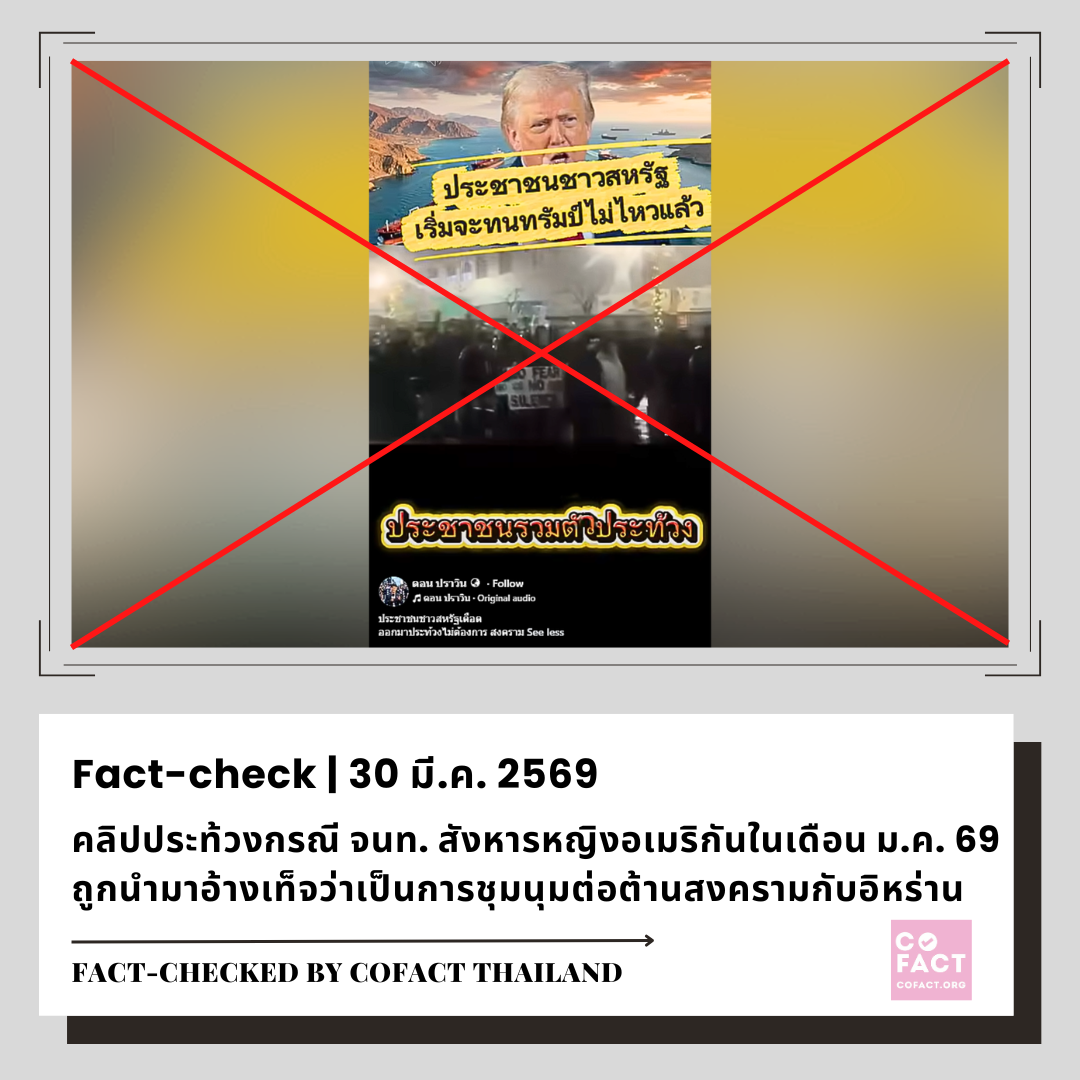 ❓ เนื้อหาที่ตรวจสอบ: คลิปชาวอเมริกันประท้วงต่อต้านสงครามอิหร่าน