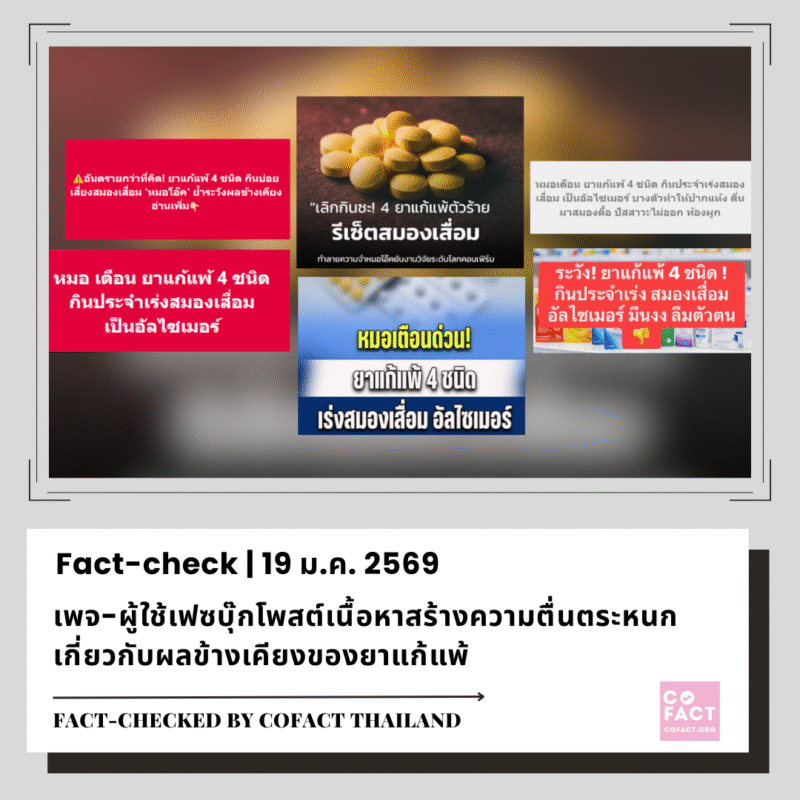 เนื้อหาเป็นจริงบางส่วน เพจ-ผู้ใช้เฟซบุ๊กโพสต์เนื้อหาสร้างความตื่นตระหนกเกี่ยวกับผลข้างเคียงของยาแก้แพ้ 19/01/26