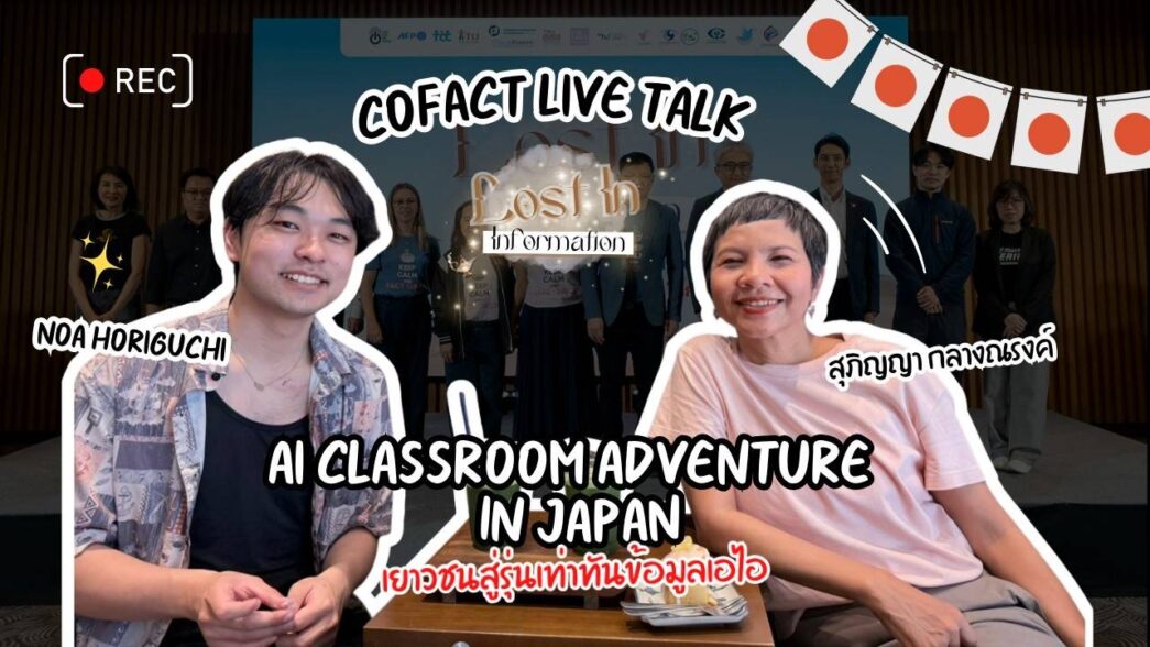 Cofact Live Talk โดยภาคีโคแฟค (ประเทศไทย) ในหัวข้อ “AI Classroom Adventure in Japan” ชวนพุดคุยกับ Noa Horiguchi ซีอีโอของ Classroom Adventure จากประเทศญี่ปุ่น ว่าด้วย “Ray’s Blog” นวัตกรรมเกมสร้างการรู้เท่าทันสื่อและทักษะการตรวจสอบข้อมูลข่าวสารบนโลกออนไลน์ เนื่องในโอกาสที่คุณโนอาเดินทางมาร่วมงานวันตรวจสอบข้อเท็จจริงสากล (International Fact-Checking Day) ที่ประเทศไทย เมื่อวันที่ 2 เม.ย. 2569 ที่ผ่านมา