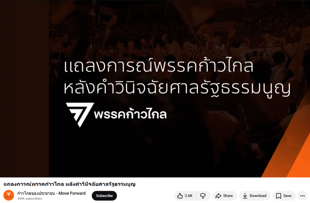 🔎 โคแฟคตรวจสอบ: ประเด็นที่โคแฟคตรวจสอบคือ พรรคอนาคตใหม่และพรรคก้าวไกลไม่ได้ออกแถลงการณ์ภายหลังถูกยุบพรรคจริงหรือไม่?