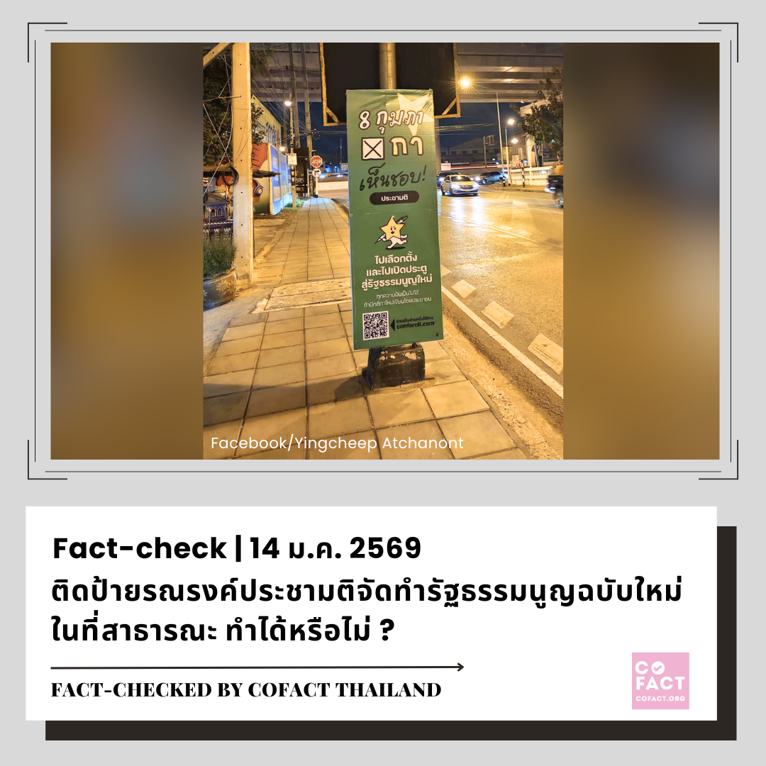 ❓ เนื้อหาที่ตรวจสอบ: ติดป้ายรณรงค์ประชามติจัดทำรัฐธรรมนูญฉบับใหม่ในที่สาธารณะได้หรือไม่