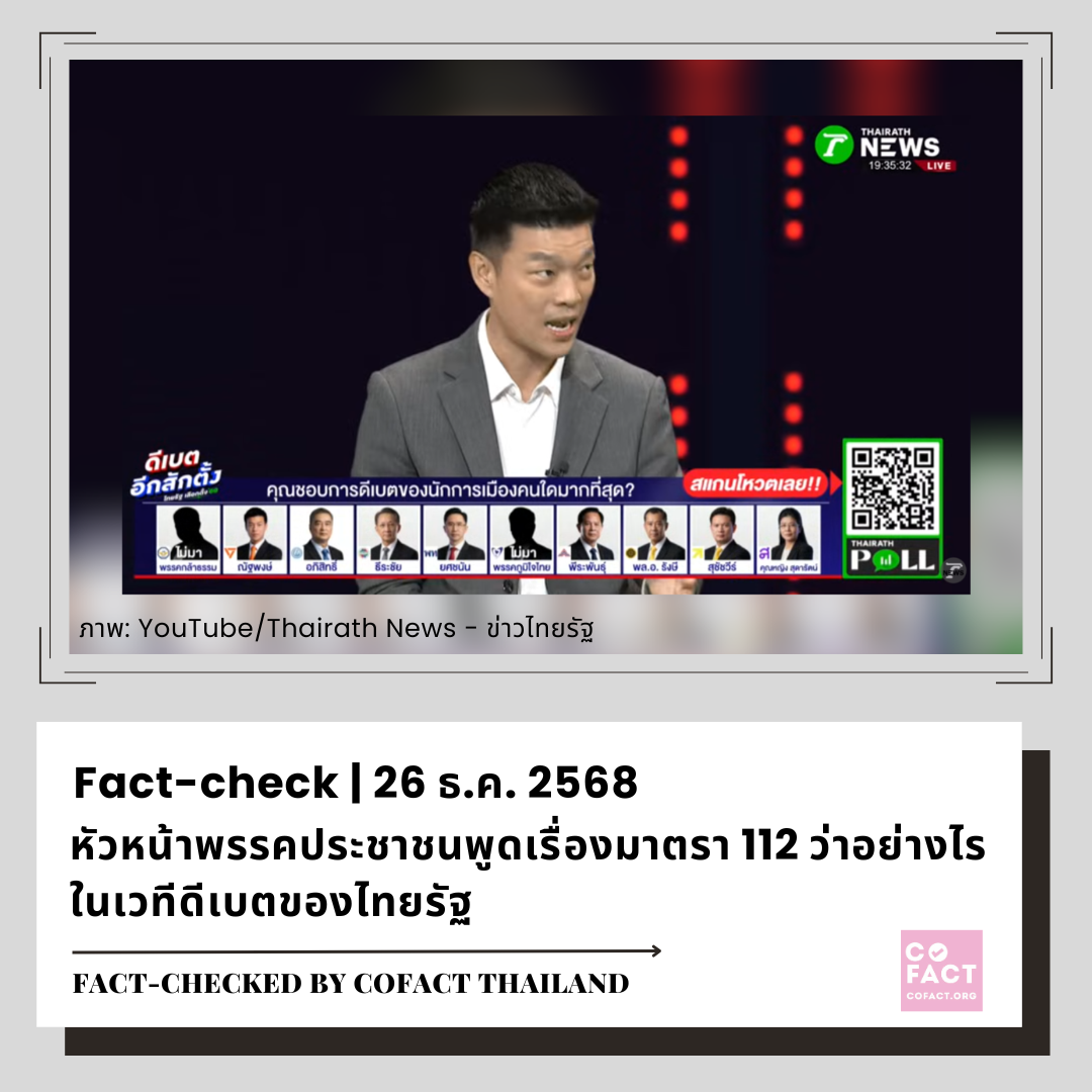 หมายเหตุ: รายงานการตรวจสอบข้อเท็จจริงทางการเมืองนี้เป็นส่วนหนึ่งของโครงการ Information Integrity Towards Fact Free Fair Elections in Thailand ซึ่งโคแฟค Thai PBS Verify และมหาวิทยาลัยธรรมศาสตร์ ได้รับการสนับสนุนจากสถานทูตเยอรมนีประจำประเทศไทย