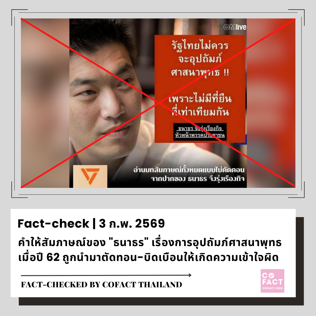 ❓ เนื้อหาที่ตรวจสอบ: “ธนาธร จึงรุ่งเรืองกิจ” ให้สัมภาษณ์ว่า “รัฐไทยไม่ควรจะอุปถัมภ์ศาสนาพุทธ”
