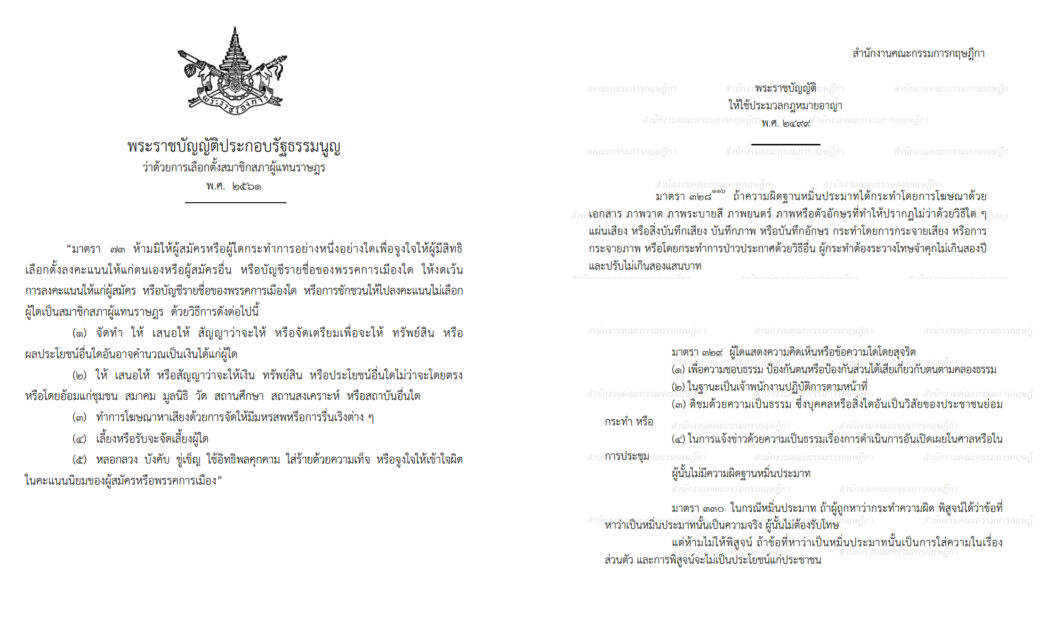 ภาพที่ 3 : พระราชบัญญัติประกอบรัฐธรรมนูญว่าด้วยการเลือกตั้งสส. และประมวลกฎหมายอาญาว่าด้วยความผิดฐานหมิ่นประมาท