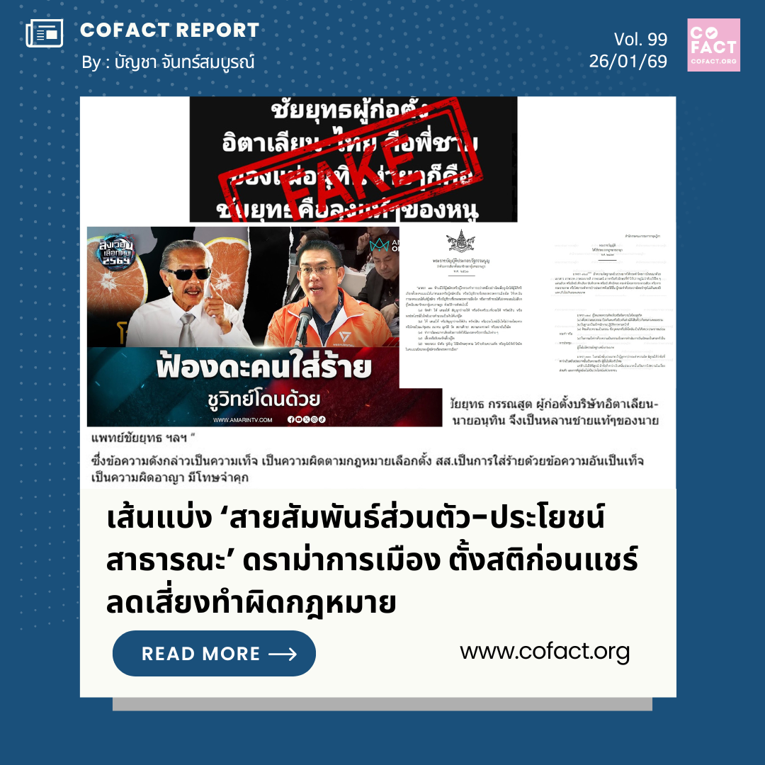 นับตั้งแต่รัฐบาลประกาศยุบสภาเมื่อวันที่ 12 ธ.ค. 2568 บรรยากาศการเมืองมุ่งหน้าสู่การเลือกตั้งสมาชิกสภาผู้แทนราษฎร (สส.) เป็นไปอย่างคึกคัก แต่ก่อนจะไปถึงวันที่ 8 ก.พ. 2569 ซึ่งเป็นวันเปิดคูหาให้ประชาชนไปลงคะแนน ในระหว่างนี้ที่หลายพรรคเร่งหาเสียงให้ผู้สมัครของตน สงครามข่าวสารทั้งที่มาจากผู้เกี่ยวข้องกับพรรคการเมืองและจาก กองเชียร์กองแช่ง แพร่กระจายไปทั่วทั้งพื้นที่สื่อมวลชนและสื่อสังคมออนไลน์ ซึ่งหลายเรื่องก็ได้รับคำยืนยันว่าไม่เป็นความจริง แต่อีกบางเรื่องก็เป็นเรื่องยากในการตรวจสอบ