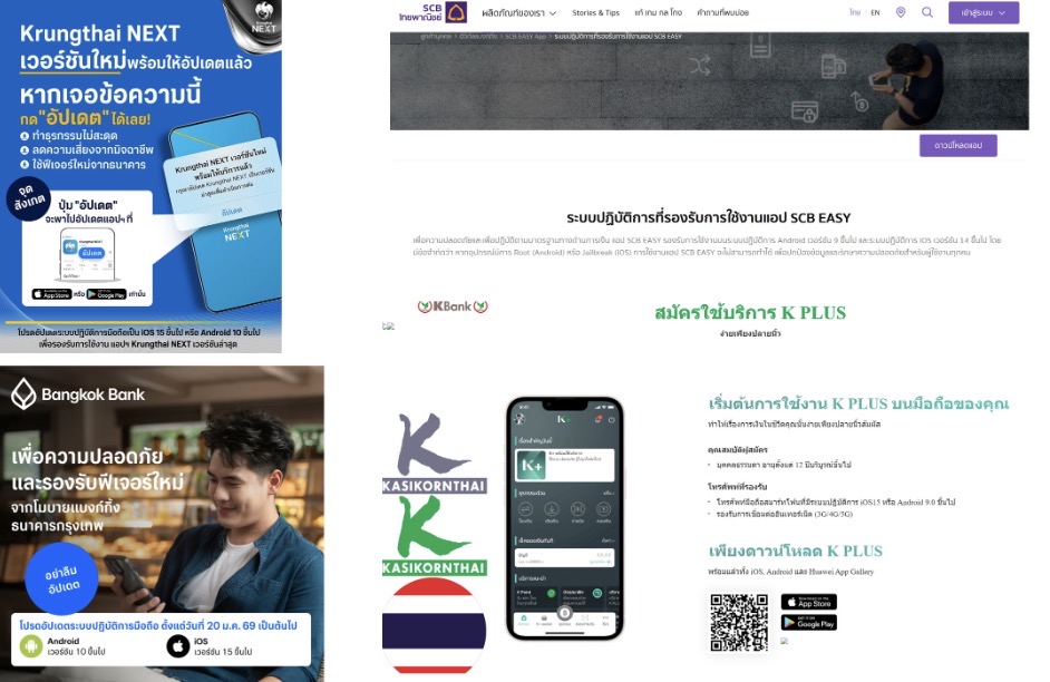 นอกจากนั้น ในวันที่ 15 ม.ค. 2569 สมาคมธนาคารไทย ยังยกตัวอย่างโทรศัพท์มือถือแต่ละยี่ห้อ ว่ารุ่นใดบ้างที่เข้าข่าย “ไม่ได้ไปต่อ” เพราะไม่สามารถอัปเดตระบบปฏิบัติการที่สูงกว่า iOS13 และ Android9 ได้ เนื้อหาเดียวกันยังถูกนำมาย้ำอีกครั้งในวันที่ 19 ม.ค. 2569 บนเว็บไซต์ของคณะกรรมการร่วมภาคเอกชน 3 สถาบัน (กกร.) ซึ่งประกอบด้วยสมาคมธนาคารไทย สภาหอการค้าแห่งประเทศไทยและสภาอุตสาหกรรมแห่งประเทศไทย