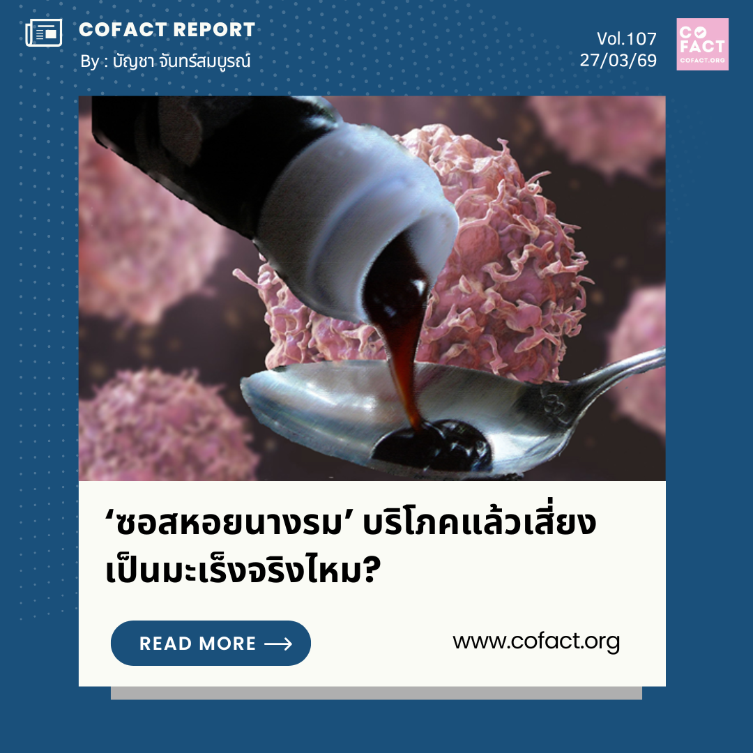 “ซอสหอยนางรมก่อมะเร็งจริงไหม?” เป็นเนื้อหาที่ทางเครือข่าย จ.สุรินทร์ ส่งมาให้ทีมงานโคแฟคส่วนกลางช่วยตรวจสอบ โดยอ้างถึงบทความ “ข่าวปลอม “ซอสหอยนางรม” ก่อมะเร็ง หมอเฉลย “3 เครื่องปรุง” นี้ต่างหากที่ต้องระวัง!” บนเว็บไซต์ sanook.com เมื่อวันที่ 4 ธ.ค. 2568 ซึ่งบทความดังกล่าวเล่าเรื่องข่าวลือในประเทศจีน ที่มีการพูดกันว่าซอสหอยนางรมมีสารก่อมะเร็ง หากกินติดต่อกันนานๆ จะเป็นอันตราย แต่ก็มีคำชี้แจงจากผู้เชี่ยวชาญด้านวิทยาศาสตร์การอาหาร บอกว่าสารที่อยู่ในซอสหอยนางรมไม่ใช่สารก่อมะเร็ง ก่อนตบท้ายด้วยให้ระวังเครื่องปรุง 3 ชนิด คือเกลือ น้ำมันและน้ำตาล ซึ่งหากบริโภคมากไปจะเพิ่มความเสี่ยงป่วยกลุ่มโรคไม่ติดต่อรื้อรัง (NCDs) ได้
