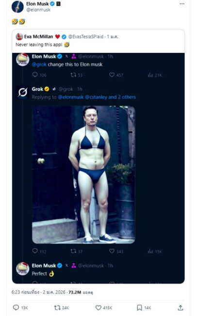 https://edition.cnn.com/2026/01/14/tech/grok-elon-musk-image-generation (Elon Musk’s Grok can no longer undress images of real people on X : CNN 14 ม.ค. 2569)