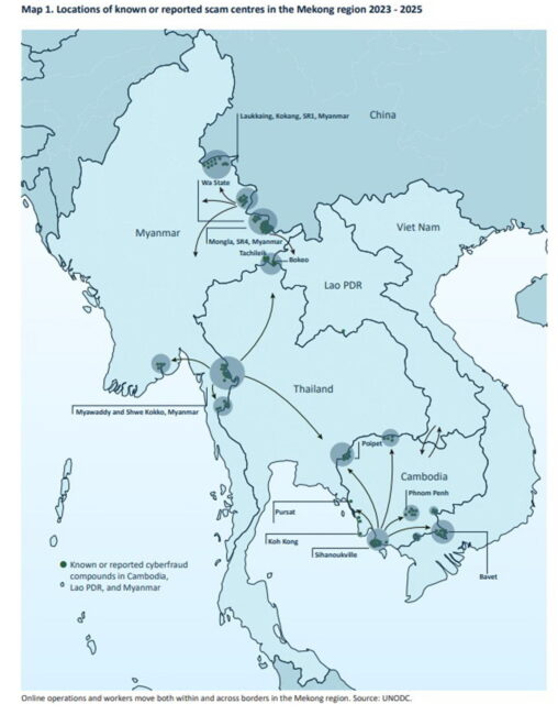 https://www.unodc.org/roseap/uploads/documents/Publications/2025/Inflection_Point_2025.pdf (Inflection Point: Global Implications of Scam Centres, Underground Banking and Illicit Online Marketplaces in Southeast Asia : UNODC)