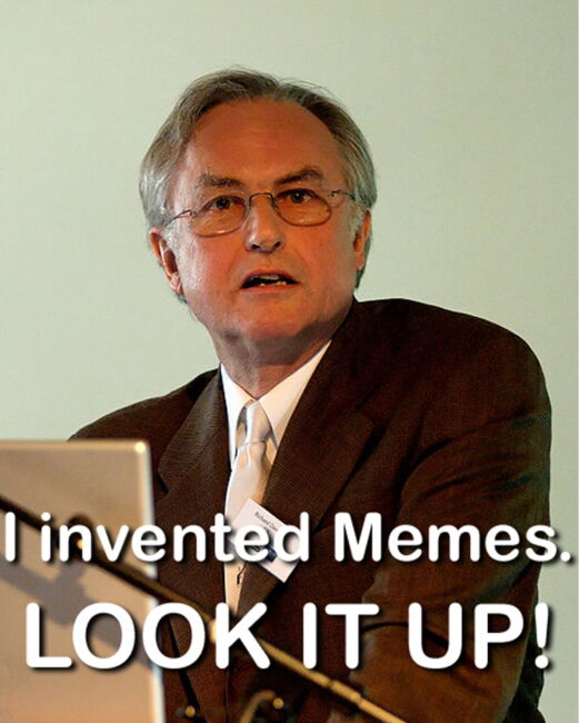 ภาพที่ 2 : ริชาร์ด ดอว์กินส์ ผู้ให้กำเนิดคำว่า “มีม” (และภาพของเจ้าตัวก็ยังถูกทำเป็นมีม)