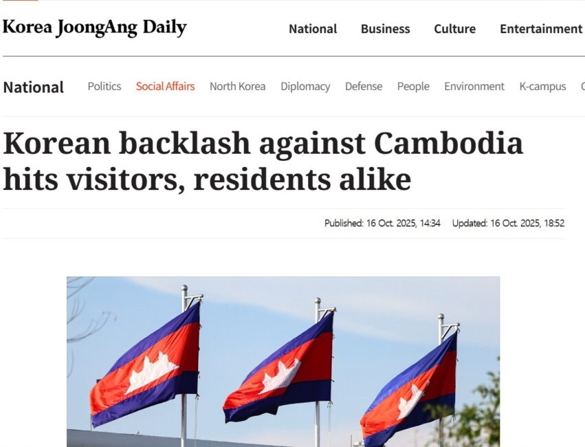https://koreajoongangdaily.joins.com/news/2025-10-16/national/socialAffairs/Korean-backlash-against-Cambodia-hits-visitors-residents-alike-/2421635 (Korean backlash against Cambodia hits visitors, residents alike : Korea JoongAng Daily 16 ต.ค. 2568)