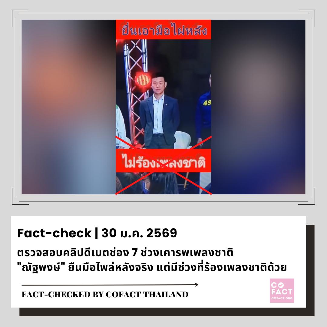 ตรวจสอบคลิปดีเบตช่อง 7 ช่วงเคารพเพลงชาติ “ณัฐพงษ์” ยืนมือไพล่หลังจริง แต่มีช่วงที่ร้องเพลงชาติ