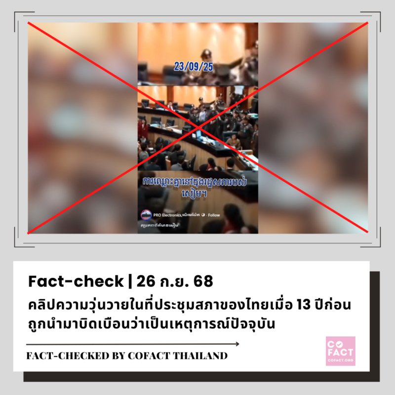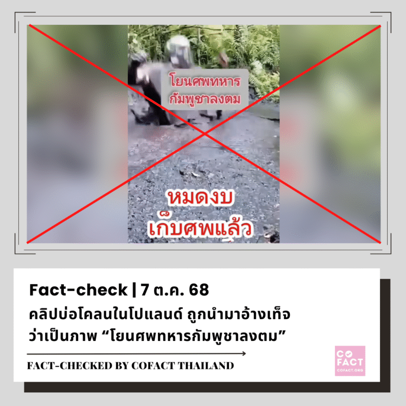 ตรวจสอบข่าวลวงสถานการณ์ ไทย – กัมพูชา TOP FACT CHECKSดูทั้งหมด >> คลิปบ่อโคลนในโปแลนด์ ถูกนำมาอ้างเท็จว่าเป็นภาพ “โยนศพทหารกัมพูชาลงตม” 7/10/25 คลิปไฟไหม้ใกล้ปั๊มน้ำมันที่ จ.ระยอง ถูกนำมาบิดเบือนว่าเป็นเหตุการณ์ในกรุงเทพฯ 7/10/25 ผู้ใช้เฟซบุ๊กชาวกัมพูชานำคลิปน้ำท่วมเชียงรายปี 2567 มาสร้างความเข้าใจผิดว่าเป็นภาพปัจจุบัน 5/10/25 คลิปน้ำท่วมใหญ่ในรัสเซียปี 2567 ถูกนำมาสร้างความเข้าใจผิดว่าเป็นอุทกภัยในประเทศไทย 3/10/25 คลิป “ทหารกัมพูชาใช้ฟันลากรถกระบะ” เป็นคลิปเก่าที่เคยเผยแพร่ตั้งแต่ปี 2563 3/10/25 คลิปเก่าที่เคยเผยแพร่ตั้งแต่ต้นปี 67 ถูกนำมาอ้างเท็จว่าเป็นภาพกองทัพกัมพูชาขนอาวุธประชิดชายแดนไทย 2/10/25 คลิปทดสอบระบบยิงจรวด HIMARS ในไต้หวัน ถูกนำมาอ้างเท็จว่าเป็นเหตุการณ์สู้รบไทย-กัมพูชา 1/10/25 คลิปสร้างกำแพงกันดินที่ปากช่อง จ.นครราชสีมา ถูกนำมาอ้างเท็จว่าสร้างรั้วที่ชายแดนไทย-กัมพูชา 30/09/25 คลิปความวุ่นวายในที่ประชุมสภาของไทยเมื่อ 13 ปีก่อน ถูกนำมาบิดเบือนว่าเป็นเหตุการณ์ปัจจุบัน 26/09/25 ตรวจสอบ 3 โพสต์เท็จเรื่อง “กัมพูชาเสริมกำลังพลที่ชายแดนไทย” 25/09/25 คลิปชาวกัมพูชาเดินขบวนเรียกร้องสันติภาพ ถูกนำมาอ้างเท็จว่าเป็นการประท้วงขับไล่รัฐบาลฮุน มาเนต 23/09/25 เพจเฟซบุ๊กโพสต์เนื้อหาเท็จวิธีปฐมพยาบาลเมื่อโดนแก๊สน้ำตา 19/09/25 ฝึกผสม Falcon Strike 2025 ของกองทัพอากาศไทย-จีน ถูกนำมาบิดเบือนในความขัดแย้งไทย-กัมพูชา 18/09/25 คลิปอุบัติเหตุ ฮ.ตำรวจตกที่ จ.ประจวบคีรีขันธ์ ถูกนำมาอ้างเท็จว่ากัมพูชายิงเครื่องบินรบไทยร่วง 16/09/25 โพสต์เท็จอ้าง อ.เฉลิมชัย โฆษิตพิพัฒน์ วิจารณ์แรง กรณีเปิดด่านไทย-กัมพูชา 15/09/25 ข้อความที่ต้องการให้ตรวจสอบดูทั้งหมด >> ข้อความ ดูทั้งหมด >> 1 คนสงสัย “ มีประกาศห้ามเร่ขาย ตั้งแผงลอย ใบกระท่อมและน้ำกระท่อม ฝ่าฝืนมีโทษปรับ 50,000 บาท จริงหรือไม่ ? ประกาศห้ามเร่ขาย ตั้งแผงลอย ใบกระท่อมและน้ำกระท่อม ฝ่าฝืนมีโทษปรับ 50,000 บาท จริงหรือไม่ ” ข่าวไทยกัมพูชา meter 1 ความคิดเห็น Sofia Idea • 1 สัปดาห์ ที่แล้ว 1 คนสงสัย สาวกัมพูชาเจ้าของร้านอาหารที่ญี่ปุ่นร้านเจ๊งเพราะปิดธงชาติไทยบนป้ายและเอาธงชาติไทยไปทำพรมเช็ดเท้า ร้านเจ้งจริงหรือไม่ จากข่าวสาวกัมพูชาเจ้าของร้านอาหารที่ญี่ปุ่นร้านเจ๊งเพราะปิดทับธงชาติไทยบนป้ายร้านและเอาธงชาติไทยไปทำพรมเช็ดเท้า ซึ่งปัจจุบันมีสื่อหลายช่องเอาไปนำเสนอ แต่มีTiktokช่องหนึ่งบอกว่าคลิปที่ปิดป้าย กับคลิปที่ร้องให้คนละคนกัน และคลิปที่ร้องให้ก็ร้องให้เพราะสมาชิกในครอบครัวต้องไปเป็นทหาร อยากทราบว่าสรุปแล้วอันไหนเป็น Fake news ข่าวไทยกัมพูชา ล้อเลียน 0 ความคิดเห็น w