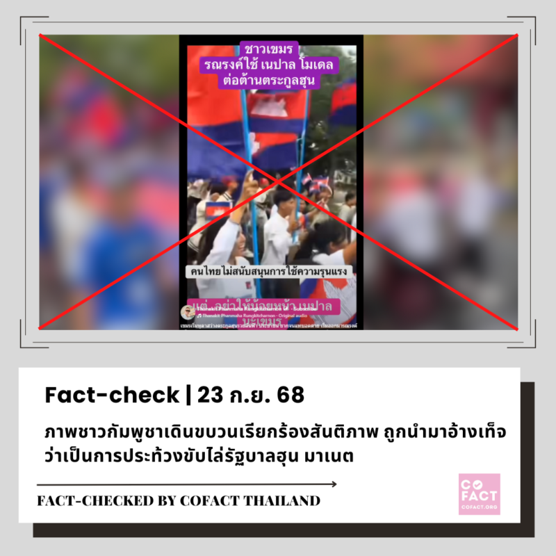 คลิปชาวกัมพูชาเดินขบวนเรียกร้องสันติภาพ ถูกนำมาอ้างเท็จว่าเป็นการประท้วงขับไล่รัฐบาลฮุน มาเนต 23/09/25