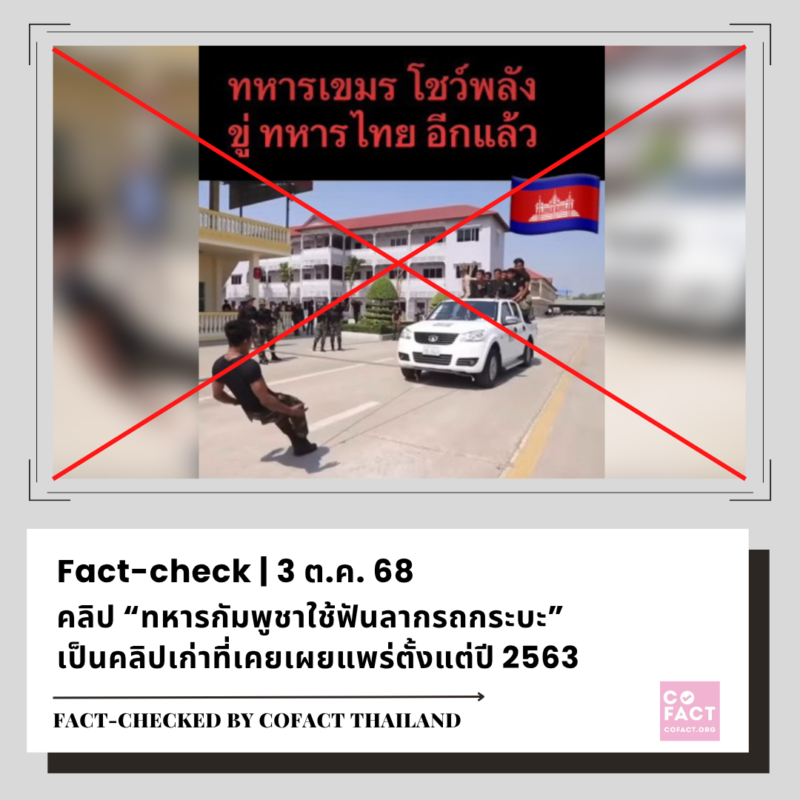คลิปเก่าที่เคยเผยแพร่ตั้งแต่ต้นปี 67 ถูกนำมาอ้างเท็จว่าเป็นภาพกองทัพกัมพูชาขนอาวุธประชิดชายแดนไทย 2/10/25